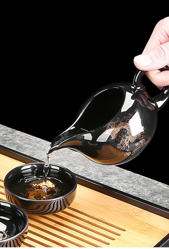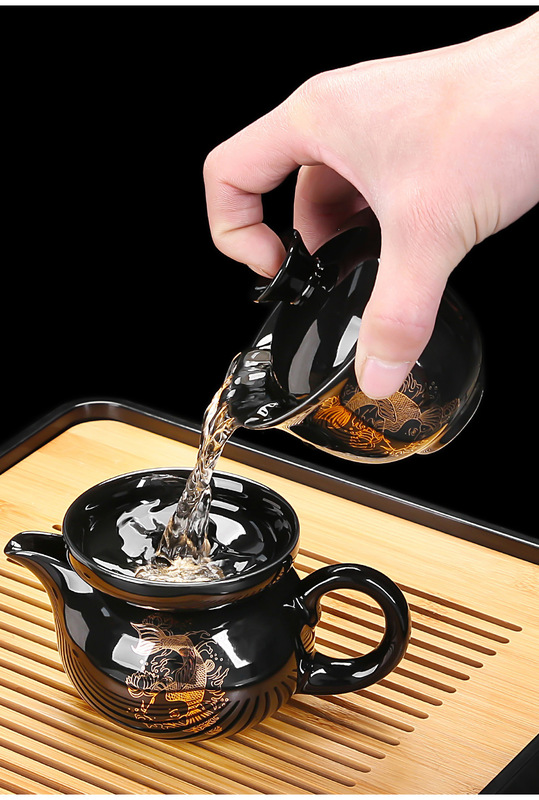 - Specification: ZH-3953 Black Glaze Koi Side Handle Teapot 8-cup 12-piece Set - Gift Box