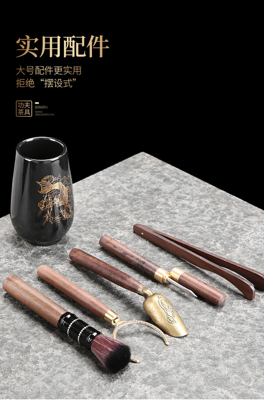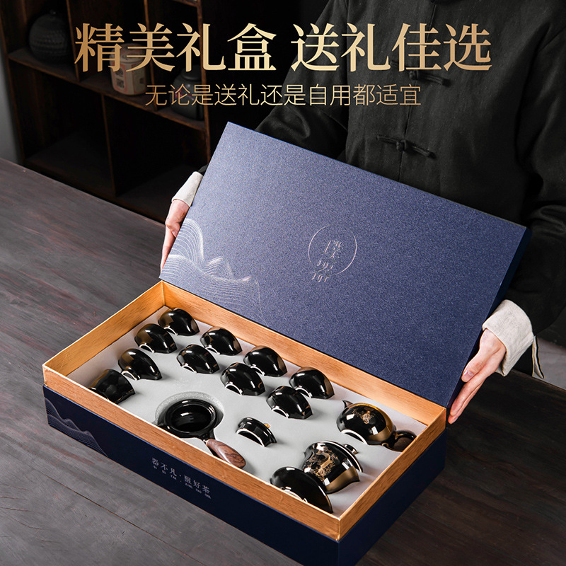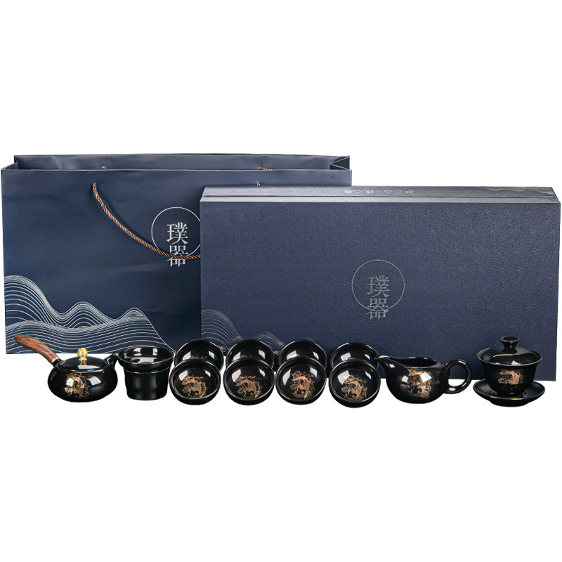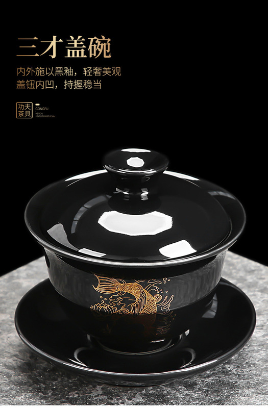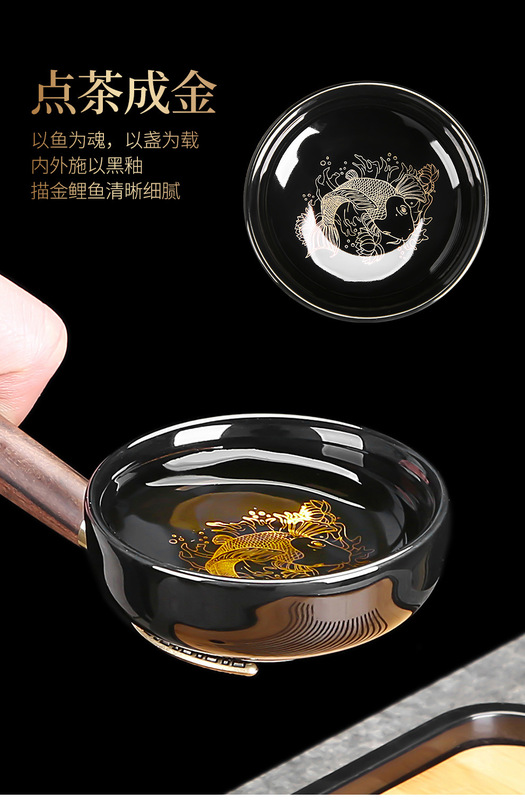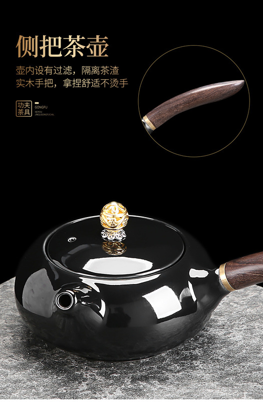 - Specification: ZH-7731 Black Glaze Koi Side Handle Teapot 8-cup with Cover Tea Ceremony Tea Canister Tea Scoop 15-piece Set - Chinese Porcelain Empty Gift Box - Large