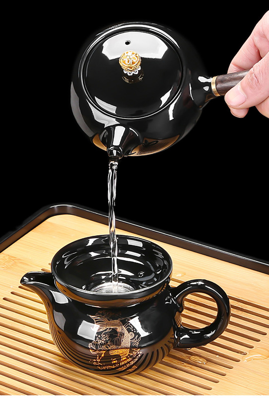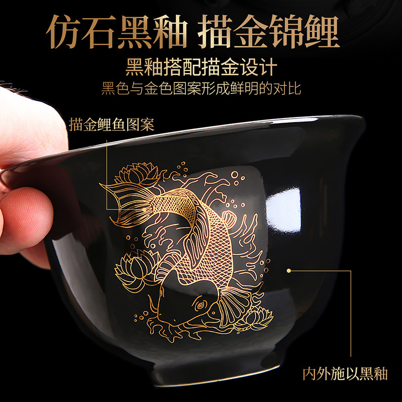 - Specification: ZH-3952 Black Glaze Koi Side Handle Teapot 6-cup 9-piece Set - Gift Box