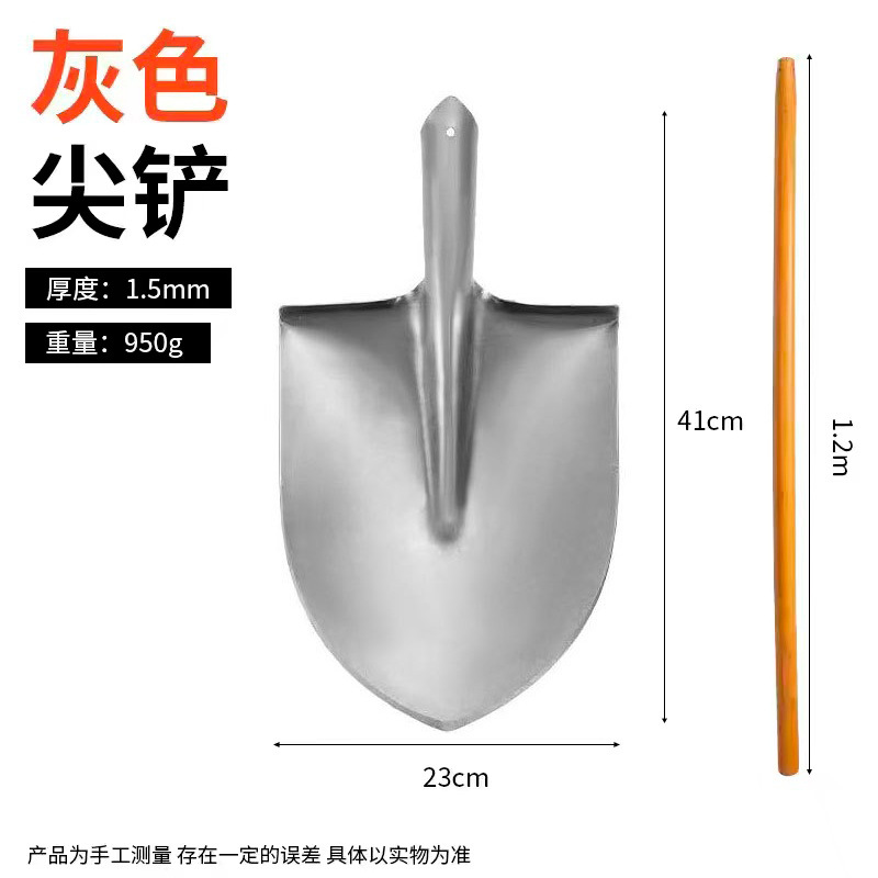 - Specification: Iron Grey Long Handle Pointed Shovel