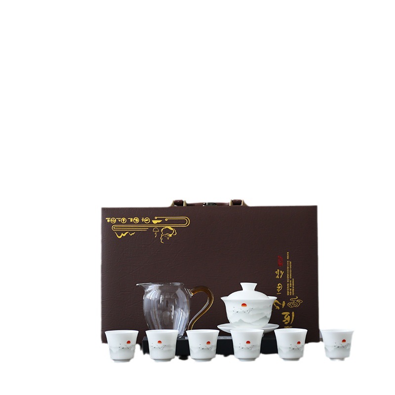- Specification:旭日东升 Aroma Cup Ceramic Tea Sea Set + Grey Leather Box