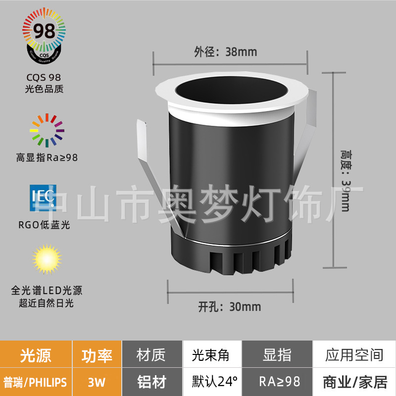 - Power: 3W【Hole Size 30mm】