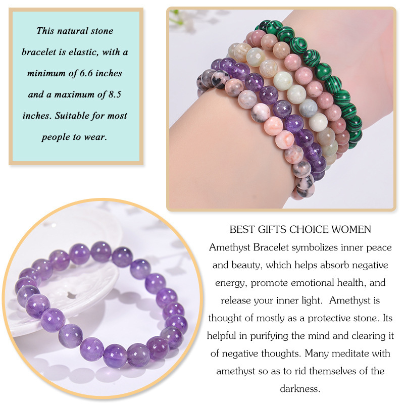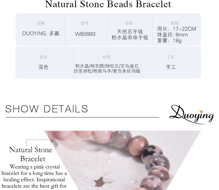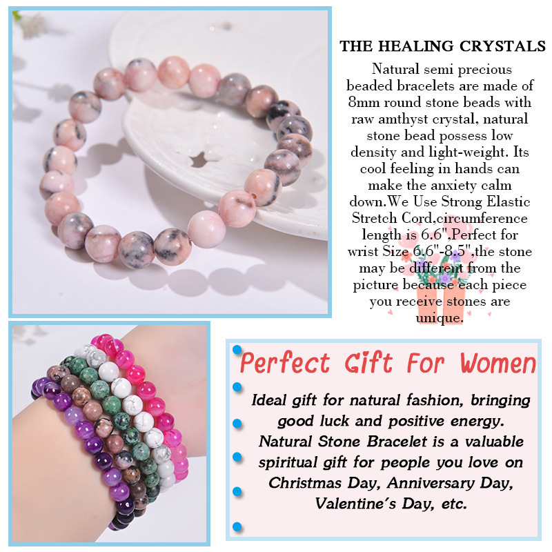 - 材質:粉水晶紅木紋粉斑馬石紫水晶綠松石瑪瑙亞馬遜石綠東陵孔雀石非洲松白松石