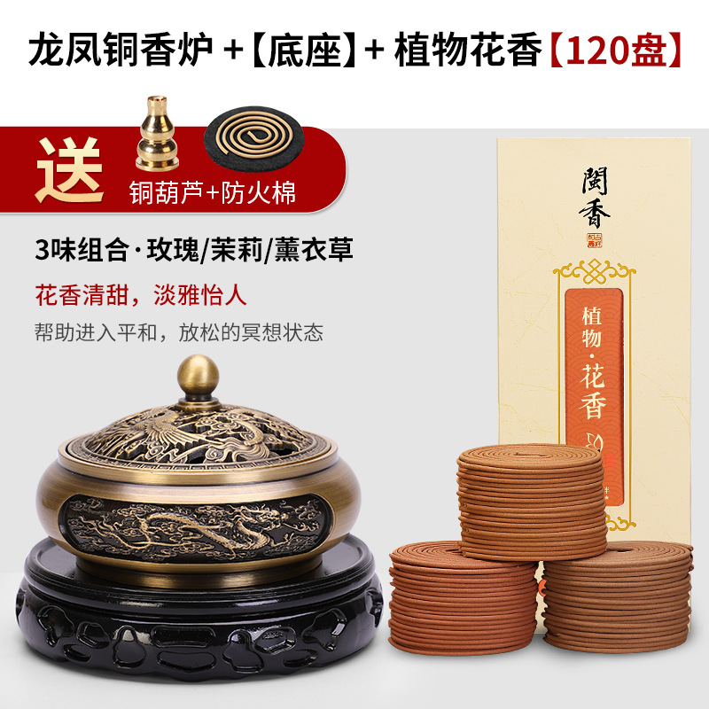 - Specifications: [dragon and phoenix present] + 120 plates of plant and floral scent + base + copper incense stick