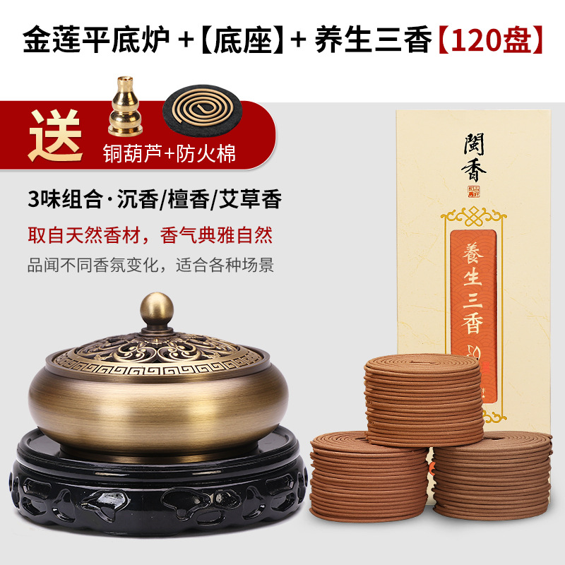 - Specifications: [Golden Lotus] + 120 plates of three health-preserving incense + base + copper incense insert