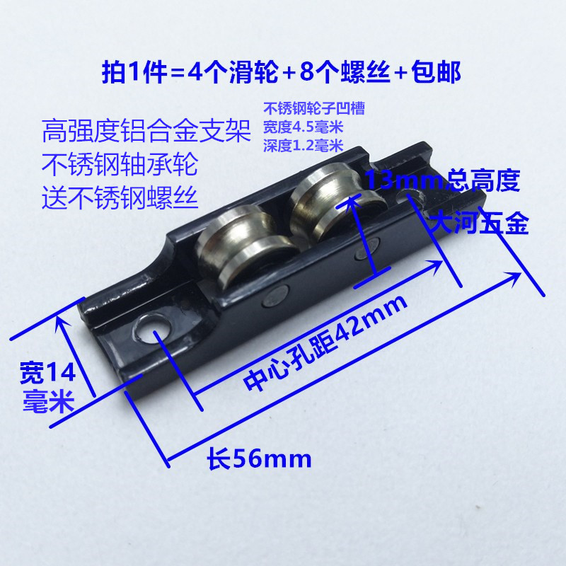 - 型號:(14mm寬)不鏽鋼軸承雙槽輪4個