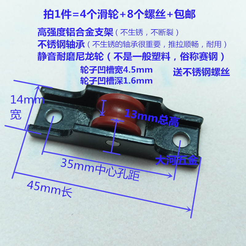 - Model: (14mm) Stainless Steel Bearing Nylon Groove Wheels 4