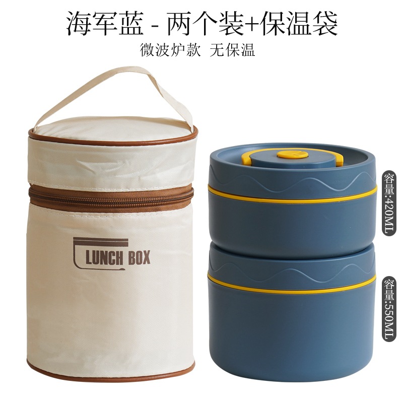 - Specifications: Microwave-safe deep blue 304 round lunchbox 2-pack + insulation bag