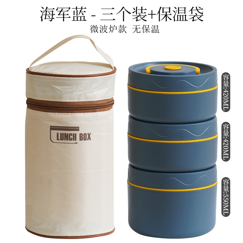 - Specifications: Microwave-safe deep blue 304 round lunchbox 3-pack + insulation bag