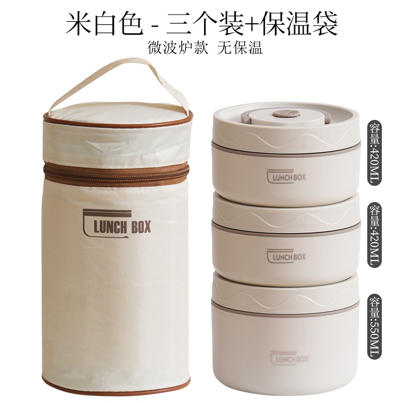 - Specifications: Microwave-safe white 304 round lunchbox 3-pack + insulation bag