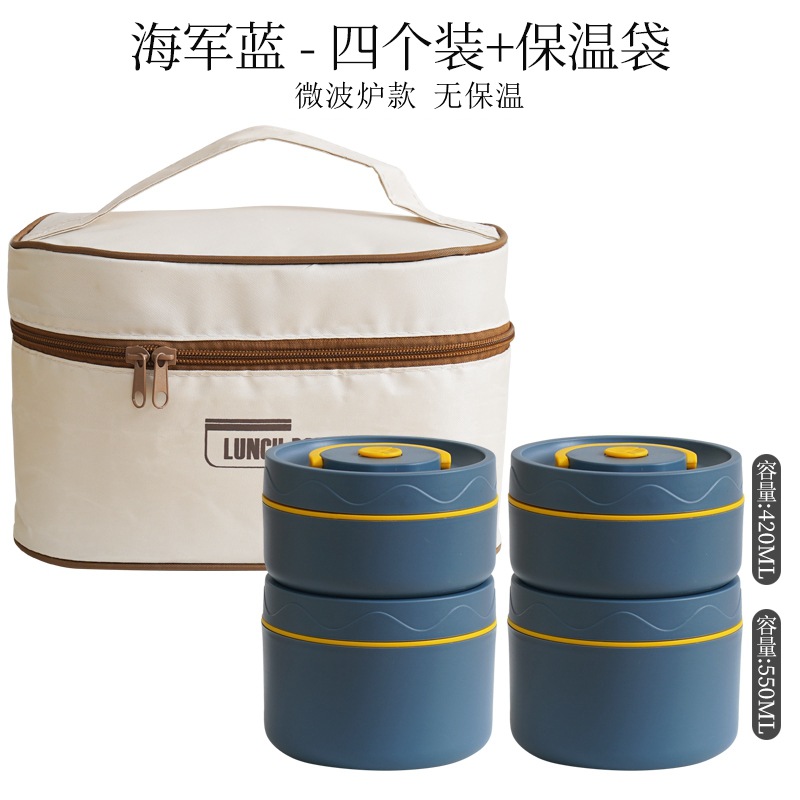 - Specifications: Microwave-safe deep blue 304 round lunchbox 4-pack + insulation bag
