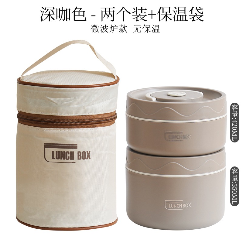 - Specifications: Microwave-safe brown 304 round lunchbox 2-pack + insulation bag