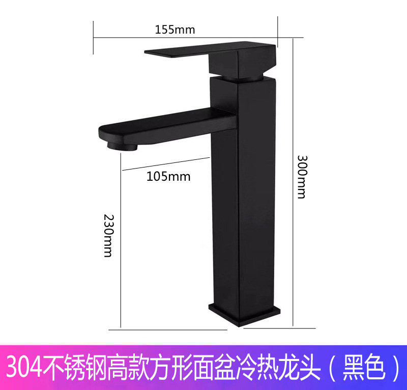 - 規格:【加高款】不鏽鋼四方面盆龍頭黑色