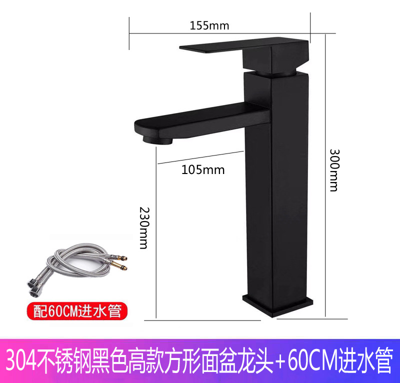 - 規格:【常規款】不鏽鋼四方面盆龍頭黑色+60長管