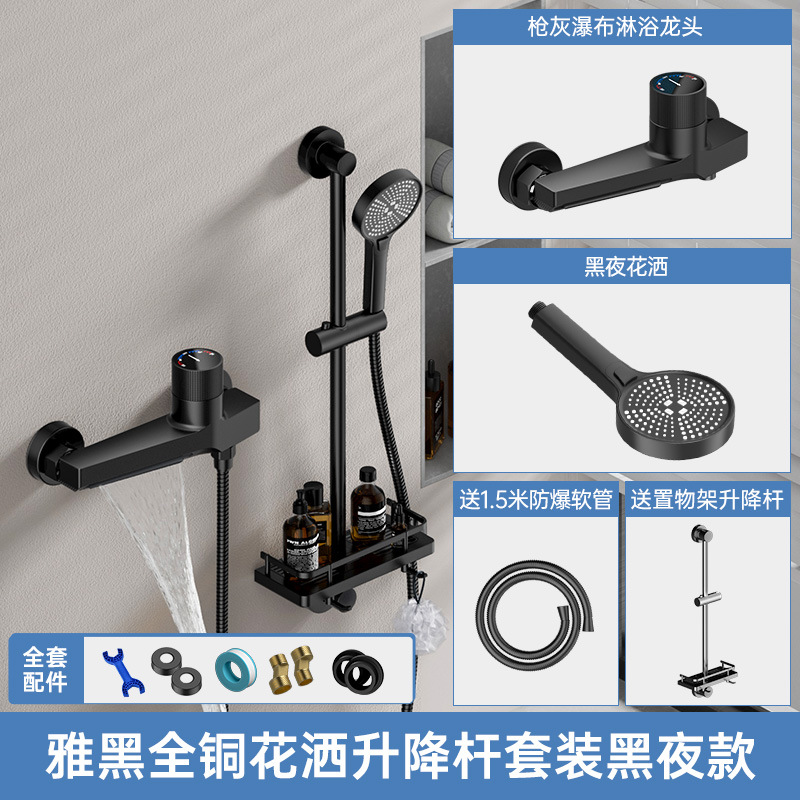 - Specifications: Gun gray [full copper model] shower waterfall faucet + square five-speed nozzle + punch-free seat (ten years warranty)