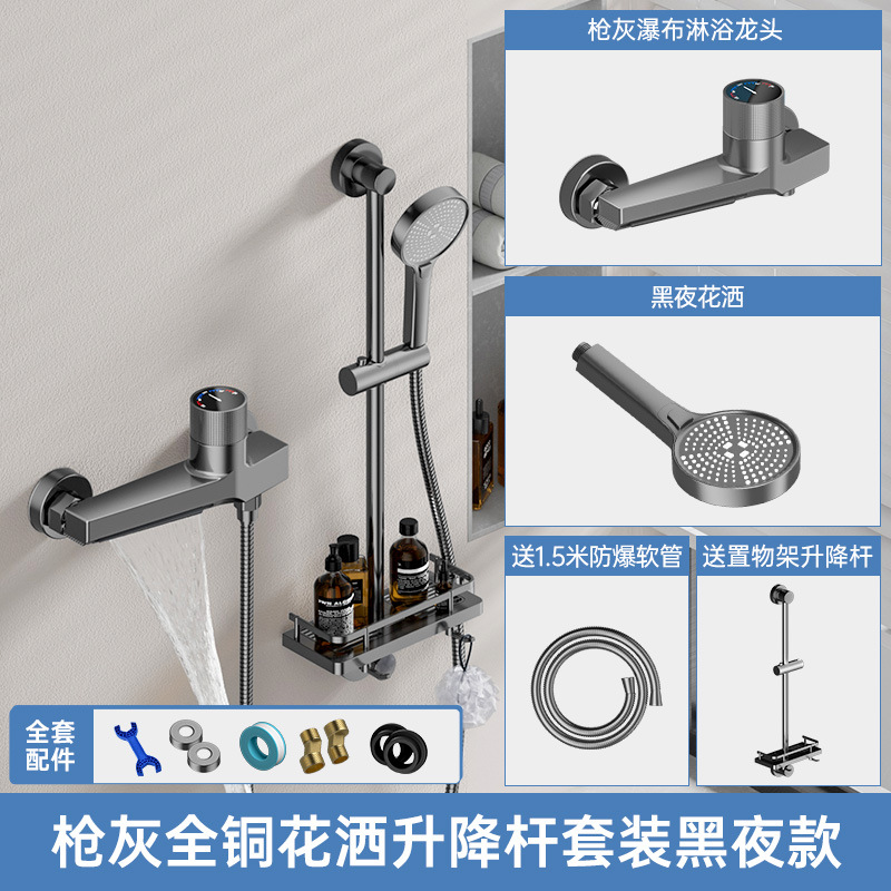 - Specifications: Gun gray [full copper model] shower waterfall faucet + five-speed booster nozzle + lifting rod (ten years warranty)