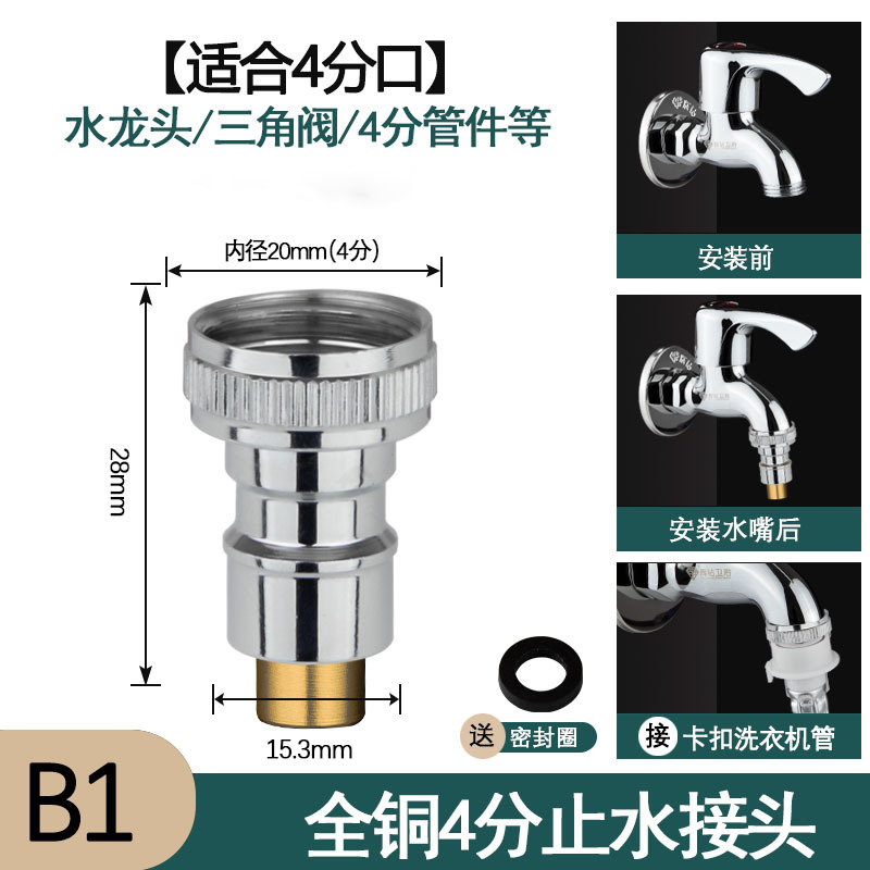 - Specifications: All copper 4-point water stop faucet + gasket