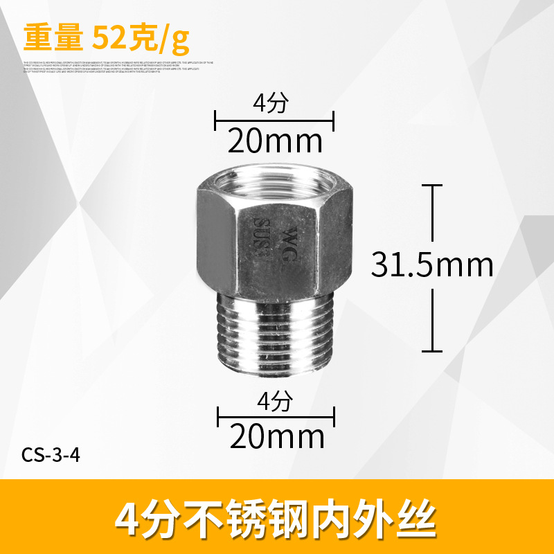 - Specification: 4/8 stainless steel male and female pipe