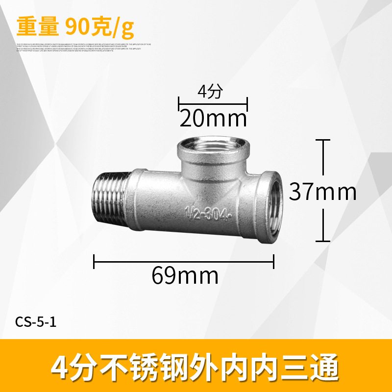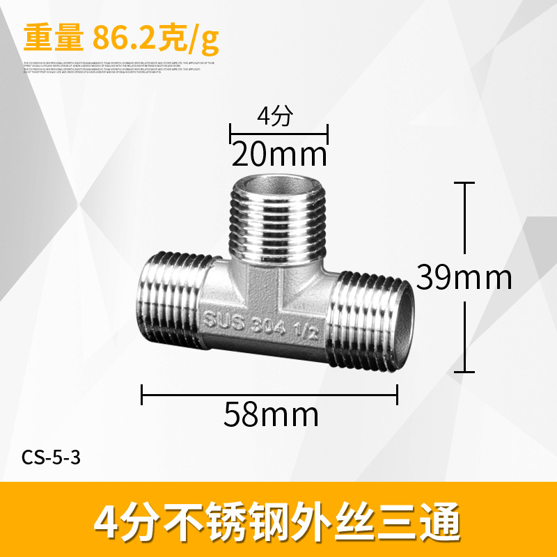 - Specification: 4/8 stainless steel male and male and female tee