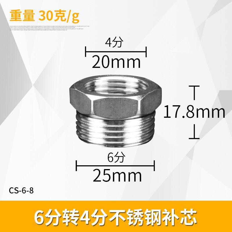 - Specification: 4/8 stainless steel male to 6/8 stainless steel plug