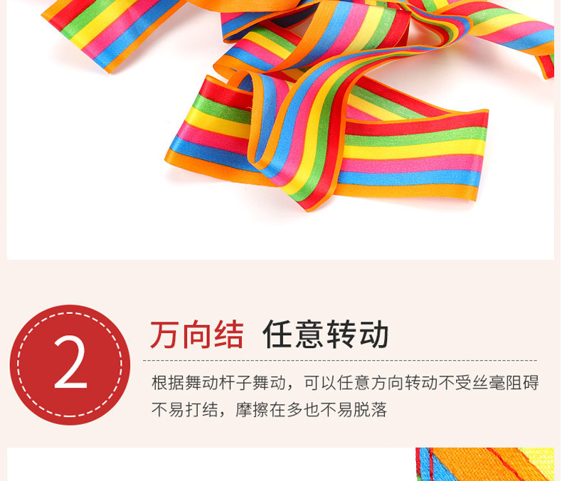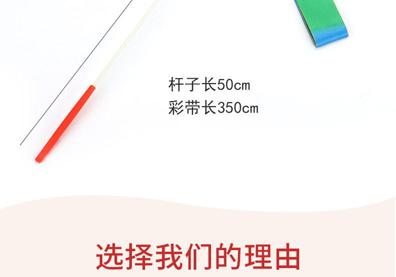 - 規格:彩帶長4米、寬5厘米、杆子長0.5米、手柄長15厘米