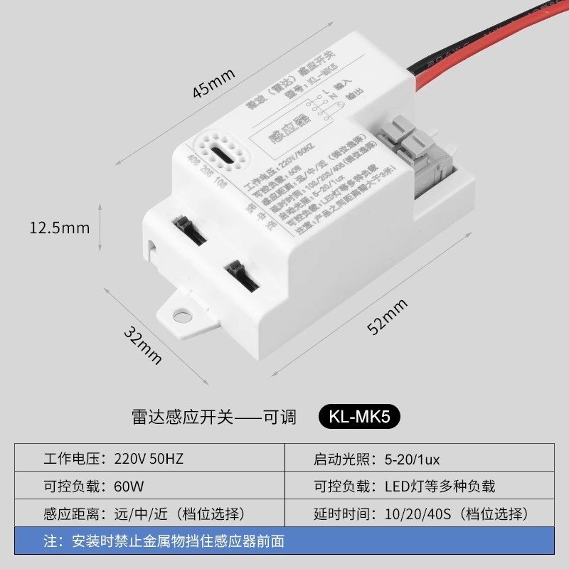 - Model: Radar Module (60W) - Adjustable Delay/Distance