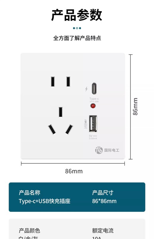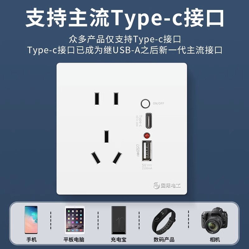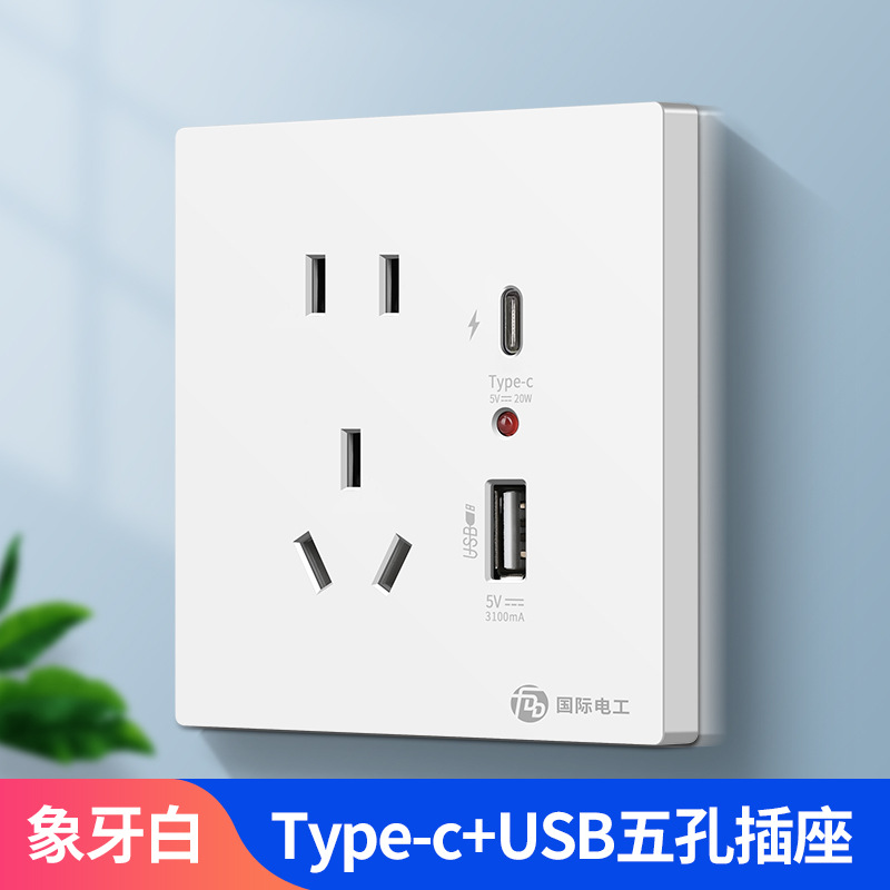 - Model: [2.1A Switch] White - Five-Pin + USB Port + Type-C