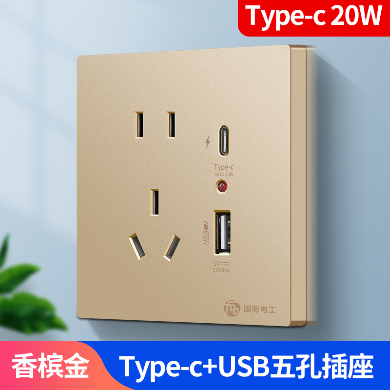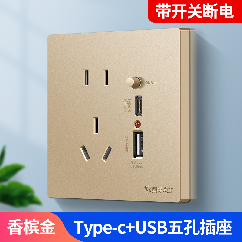 - Model: [2.1A Switch] Gold - Five-Pin + USB Port + Type-C