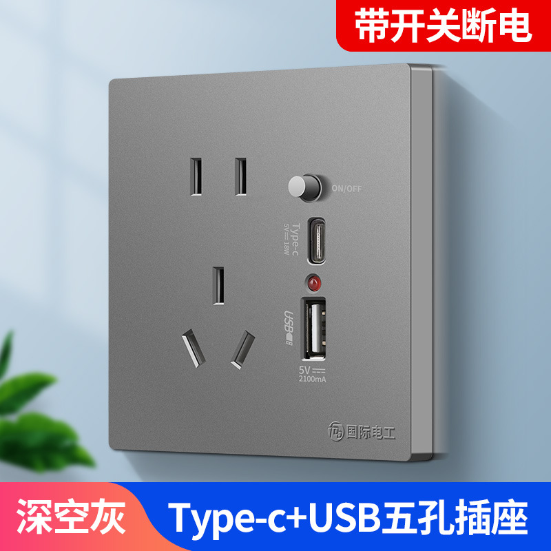 - Model: [2.1A Switch] Gray - Five-Pin + USB Port + Type-C