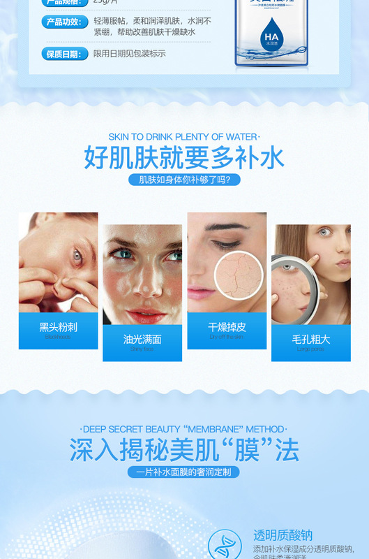 - 化妝品功效:補水保濕