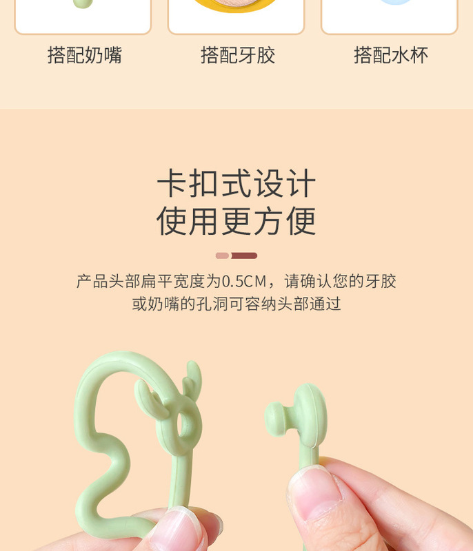 - Food grade teether to prevent the chain from falling off: pacifier clip to prevent the chain from falling off