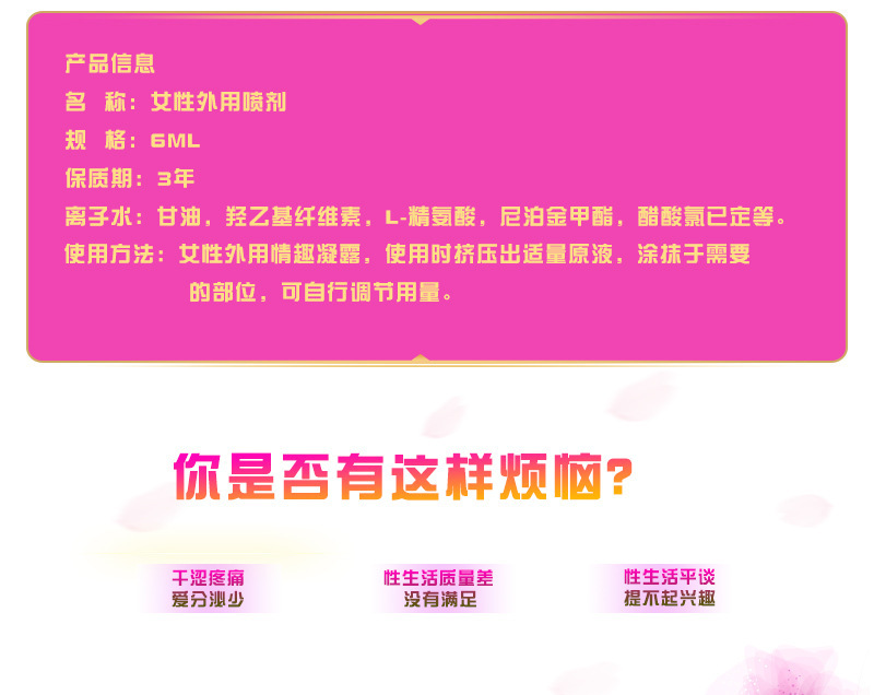 - Applicable range: Sexual lubrication, foreplay, can be used with condoms, adult toys,情趣 toys, vibrators, sex toys, feminine hygiene cotton