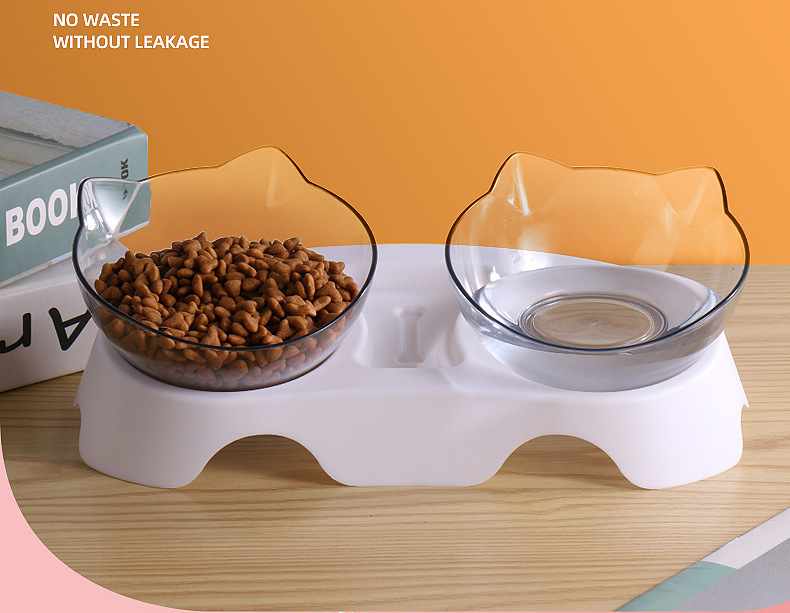 - Specifications: Cat ear double bowl transparent + white + white base