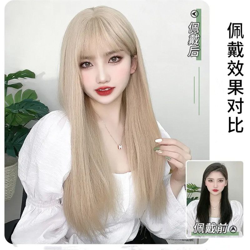 - 假髮髮型:長直發齊劉海