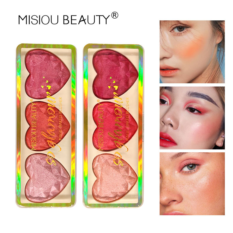 - 產品名稱:跨境專供桃心型珠光烤粉眼影顯色顯白立體彩色眼影修容高光腮紅盤