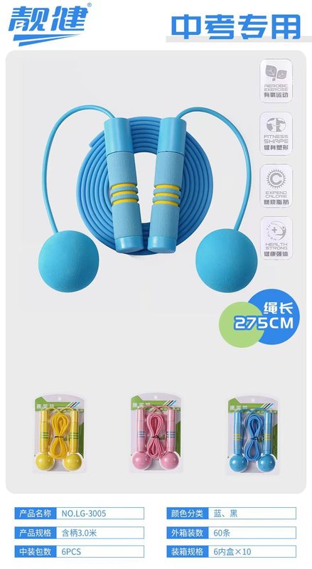 - Specification:中考训练跳绳【珠节】3色混装 [Standard Exam Training Jump Rope [Bead Section] 3-color Mixed]