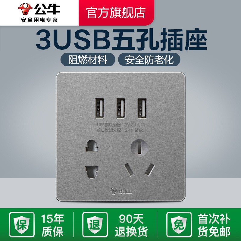 - Model: G12E536 Three-Pin + Three USB Socket Starlight Gray