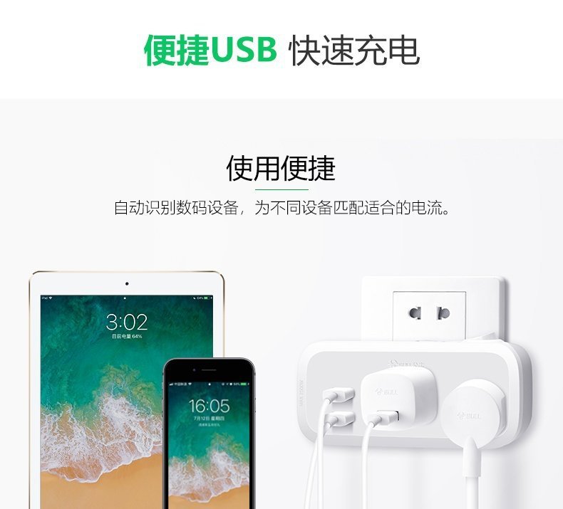 - 規格型號:U1203Q極光綠20W快充+2USB+一轉三