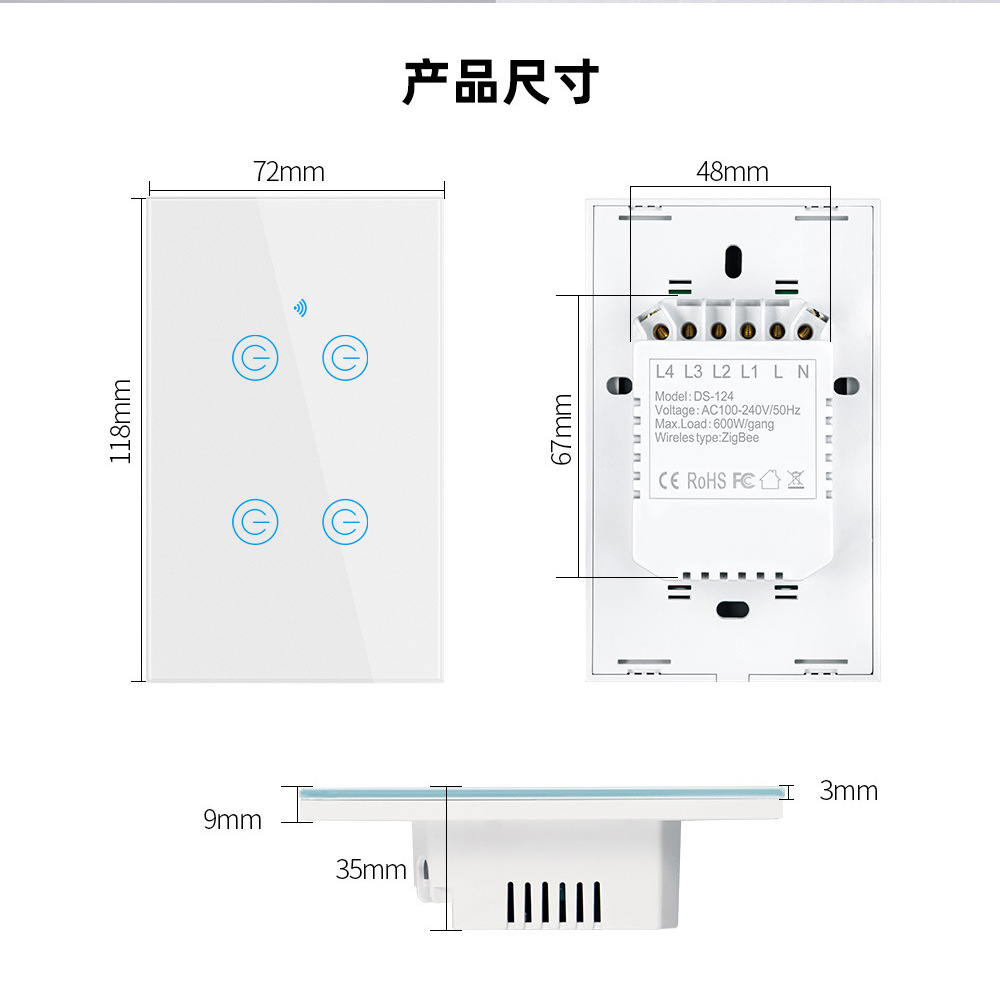 - Model: White Quad-Touch Zigbee Version