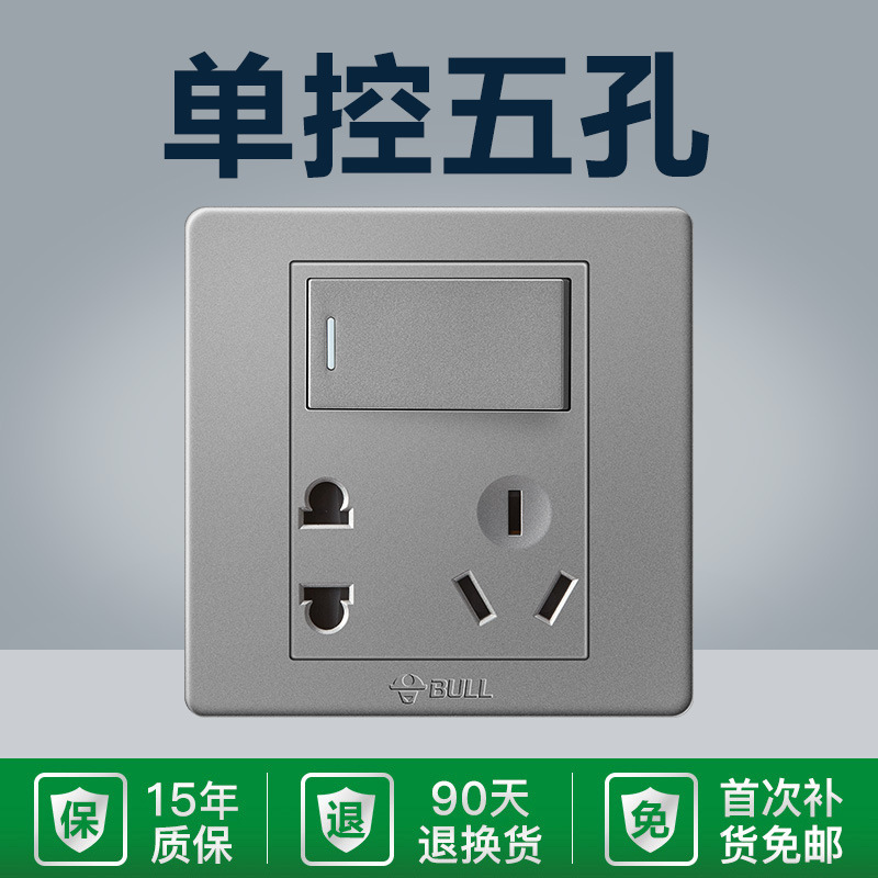 - Model: G07E334 Single Switch 5-Hole 10A Grey