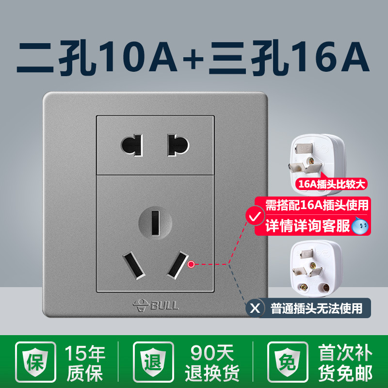 - Model: G07Z227S Double Hole 10A + Three Hole 16A Grey