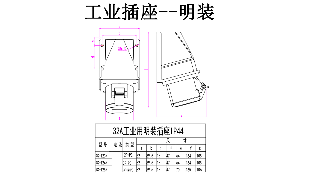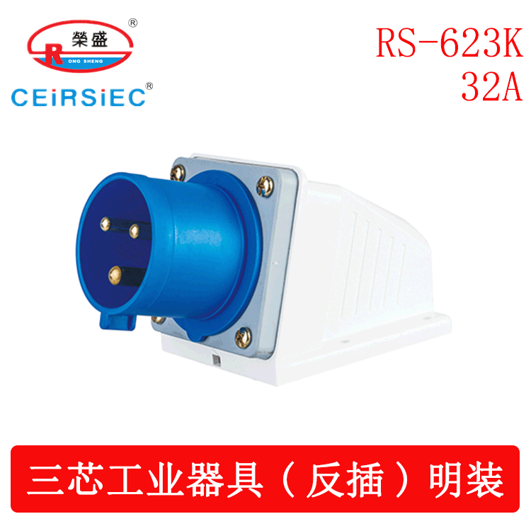 - Specifications and models: 3-core 32A surface-mounted reverse plug RS-623K