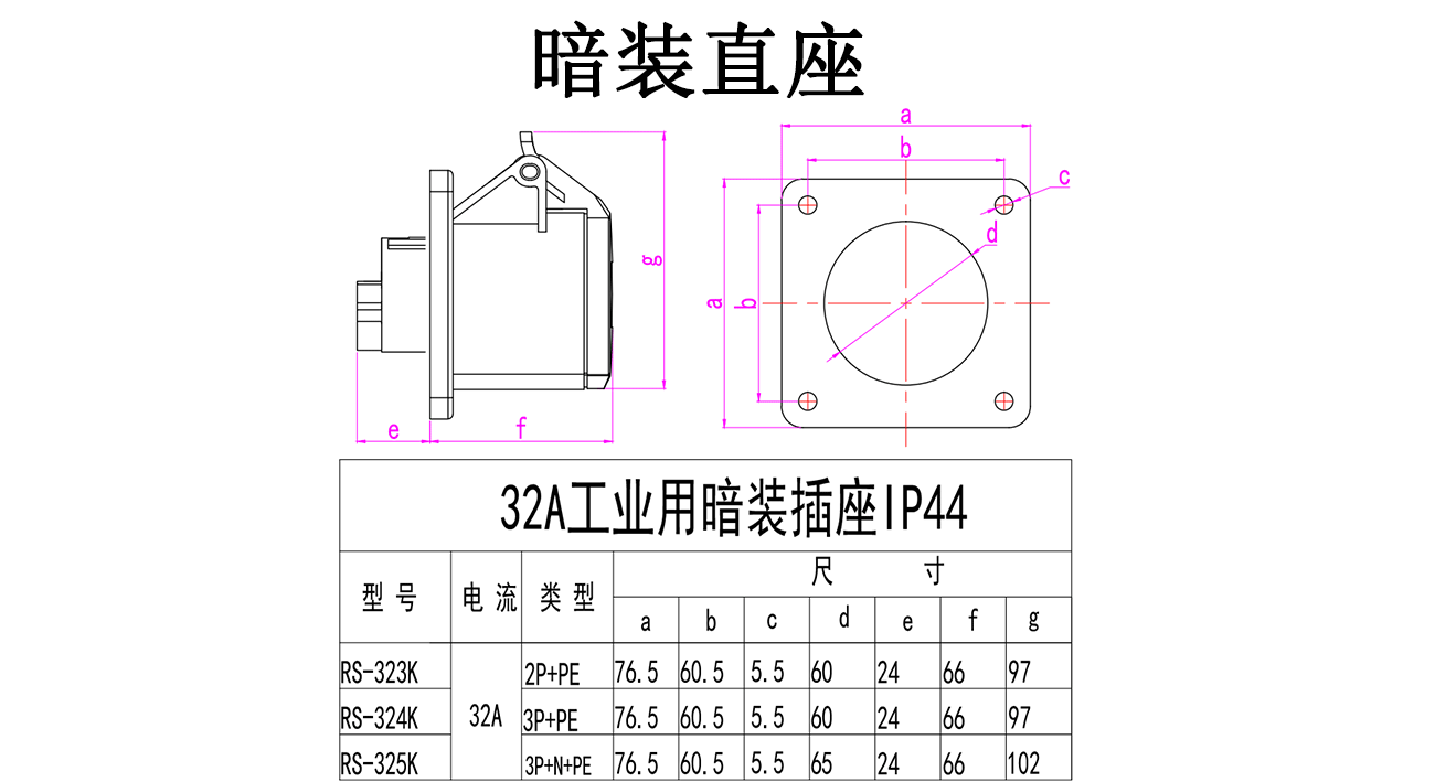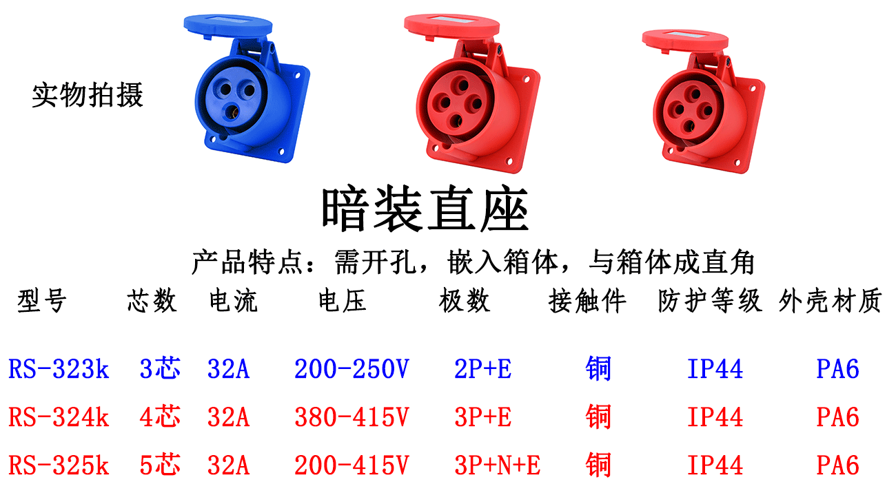 - Specifications and models: 5-core 32A concealed straight seat RS-325K