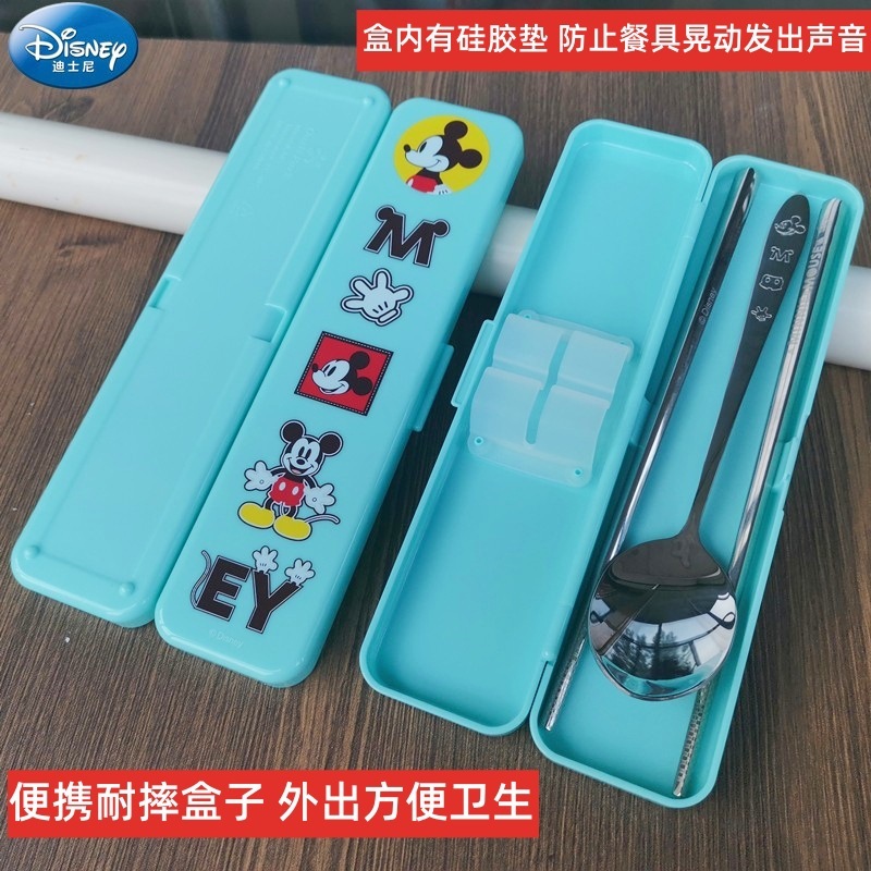 - 規格:米奇不鏽鋼餐具-筷+勺+盒-DM2397