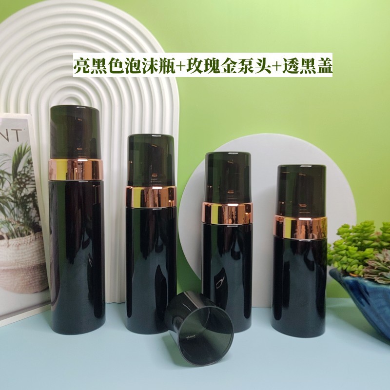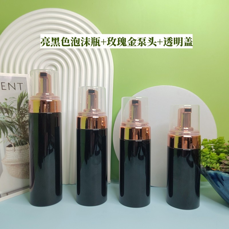 - Specifications: Bright black foam bottle + rose gold pump head + transparent cap