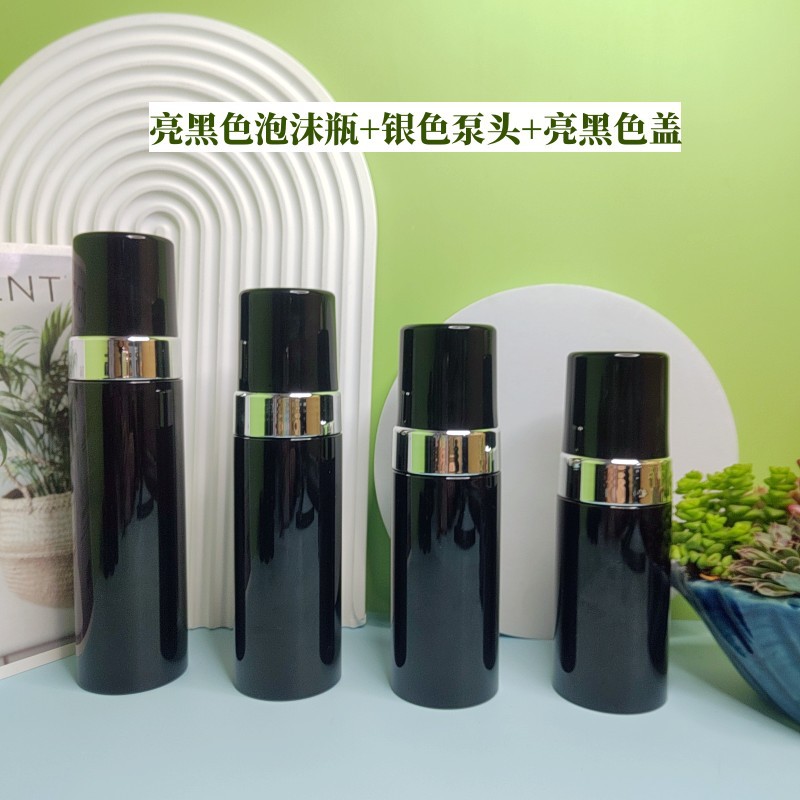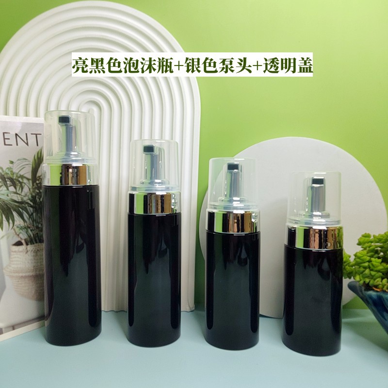 - Specifications: bright black foam bottle + silver pump head + transparent cap