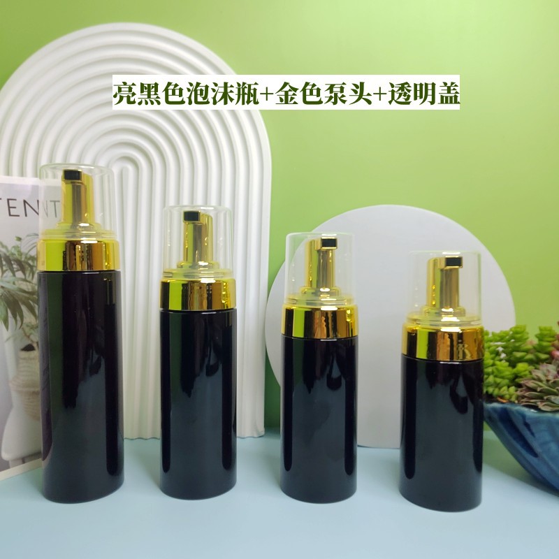 - Specifications: bright black foam bottle + gold pump head + transparent black cap