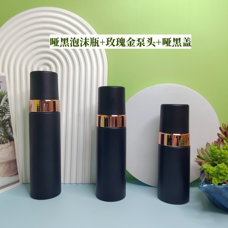 - Specifications: Matt black foam bottle + rose gold pump head + transparent cap