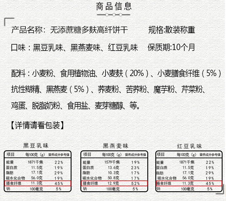 - 包裝規格:多麩餅乾【禮盒裝】黑燕麥+紅豆+黑豆1500克【約60包】