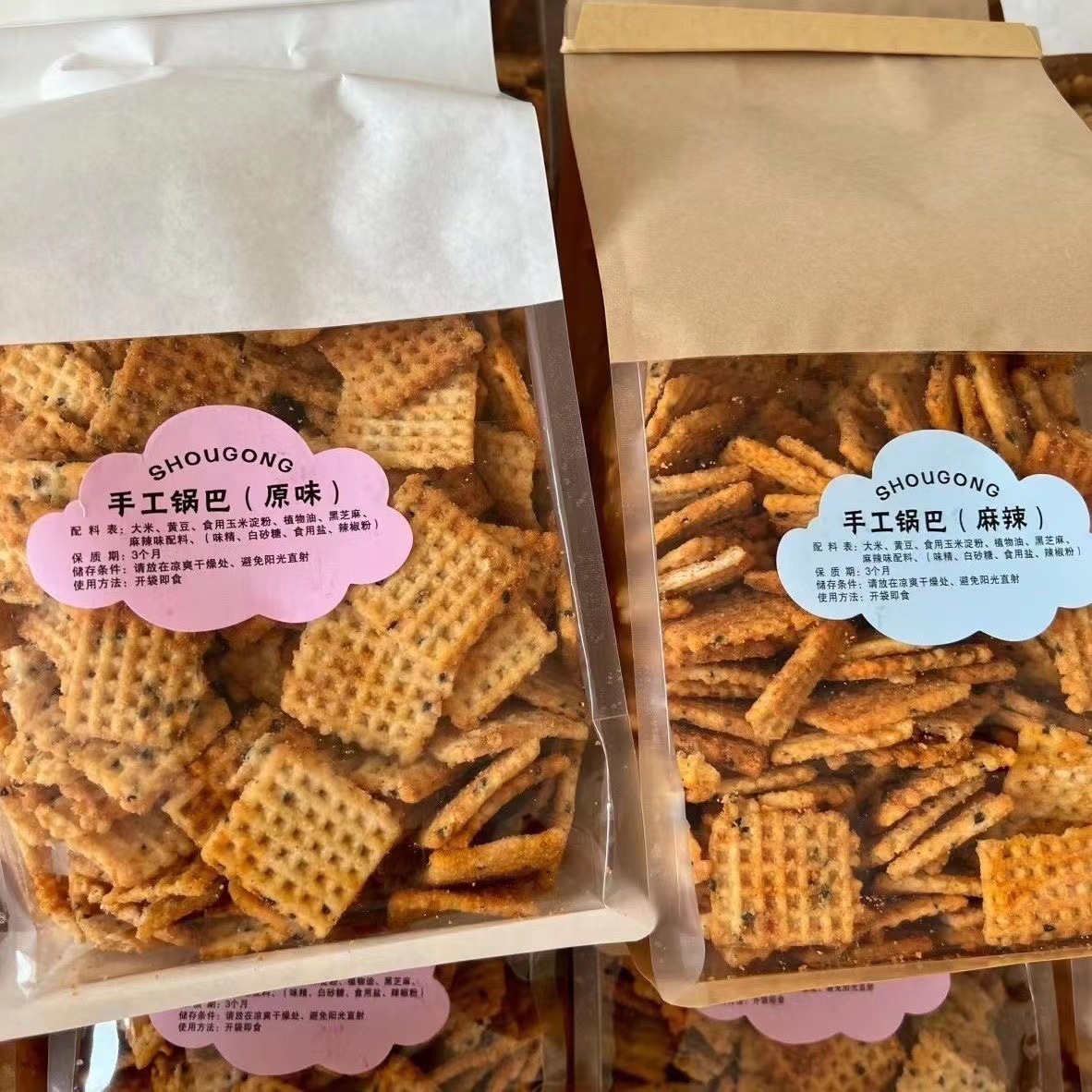 - 包裝規格:手工鍋巴麻辣500g/袋